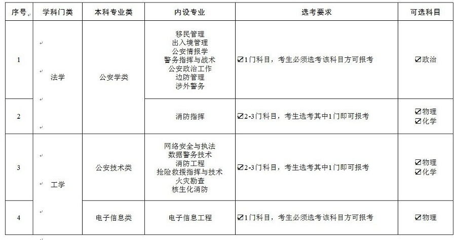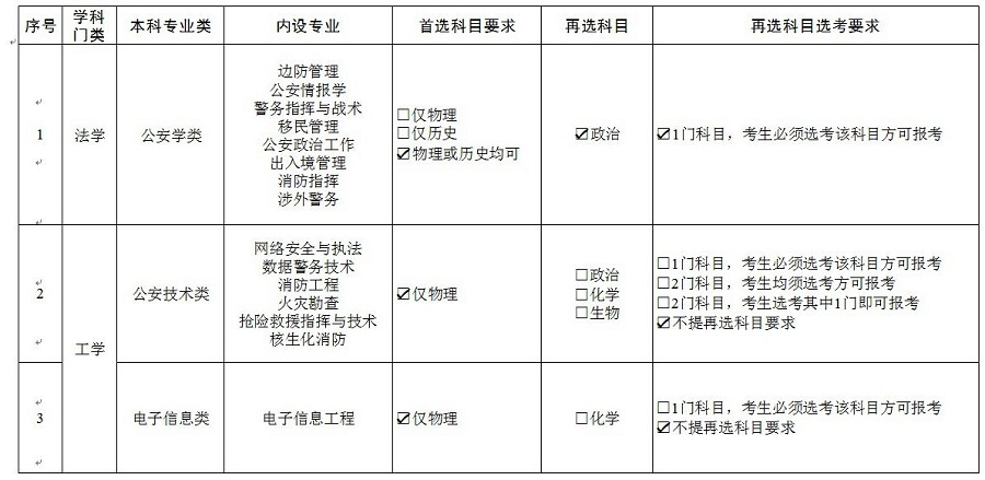 Q.我是高考改革省份考生,请问警察大学各专业对于选考科目有什么要求?
