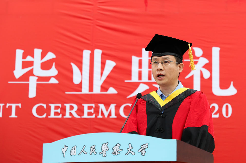 6月29日,警察大学2020届“云”毕业典礼隆重举行。学校党委书记牟玉昌主持毕业典礼,校长马金旗向毕业生致辞,防火工程学院副院长李孝斌代表教师发言,研究生院一队学员林家沐代表毕业生发言,学校党委成员、全体教职工、2020届毕业学员通过“警大APP”、校园网直播、公安网直播参加典礼。