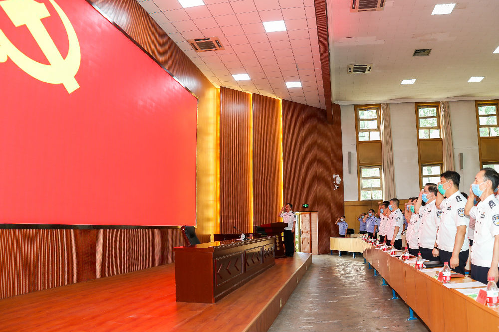 为纪念建党99周年,培训班开课前举行了“迎七一·重温入党誓词”活动,与会全体党员庄严举起右拳,面对鲜艳的党旗,齐声重温入党誓词。