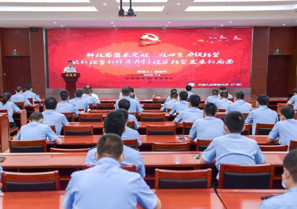 7月6日下午,学校党委委员、校区党委书记潘慈平同志以《解放思想求突破,凝心聚力促转型,以新担当新作为开创校区转型发展新局面》为题,为广州校区党员干部讲授主题党课。广州校区副处级以上领导,机关业务组和教研室负责人、全体学生中队干部现场聆听了授课。