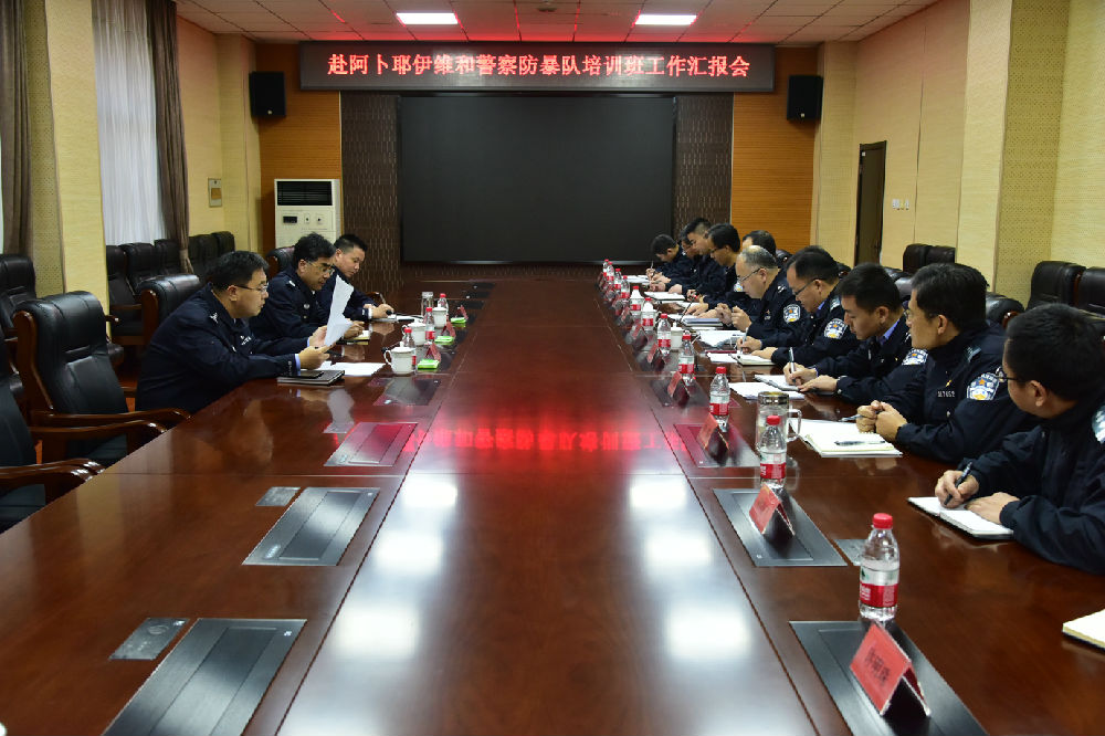 会上,维和警察培训中心党委书记丁成汇报了培训班教学准备情况。两支培训班将于11月5日至2021年1月上旬在学校举行,其中赴阿卜耶伊维和警察防暴队189人(含公安系统抽调4人),第43期维和警队29人,共计218人。
