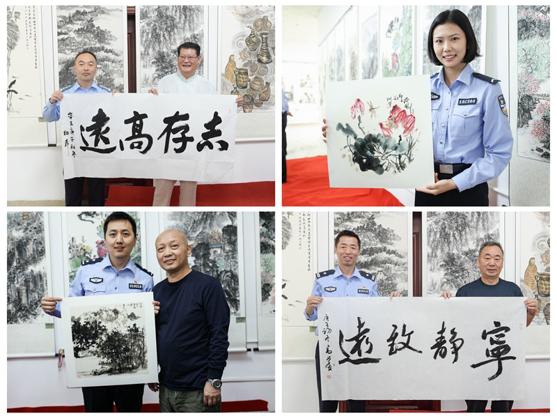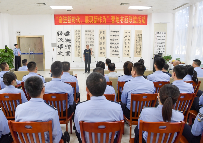 泼墨挥毫励警心,妙手丹青绘民情。11月13日上午,由广东省书法家协会、广州山水画研究学会、天河区文化艺术中心和广州校区共同主办的“奋进新时代、展现新作为” 警地书画联谊活动在校区隆重开展。学校党委委员、广州校区党委书记潘慈平出席活动,广东省书法家协会会员高荣发、秦柏柳、黄宏贵,广州山水画研究学会陈开宇会长、陈炜名誉副会长、万测宇副会长应邀出席,部分校区师生代表参加了仪式。