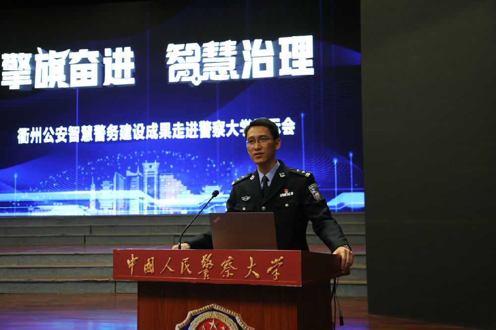 衢州市公安局报告团以“擎旗奋进智慧治理”为主题,通过VCR宣传片,介绍了衢州概况以及衢州市公安局、公安警务技能训练基地建设情况,衢州市公安局科技通信管理处处长郑羿等4名民警结合工作实际,分别围绕“衢州智慧警务实践与探索”“视频侦查实战应用”“手机寻踪”“衢州公安‘一窗通办’”等内容进行了交流展示,通过具体案例精彩生动介绍了公安信息化应用实战技巧和视频侦查技术实战应用技术,并就“人脸识别”“手机寻踪”与台下师生进行互动,使广大师生对以大数据、云计算、人工智能、5G、物联网等技术为支撑的智慧警务有了更加直观、更加清晰的认识,身临其境地感受到衢州市公安局在智慧警务建设方面取得的丰硕成果。