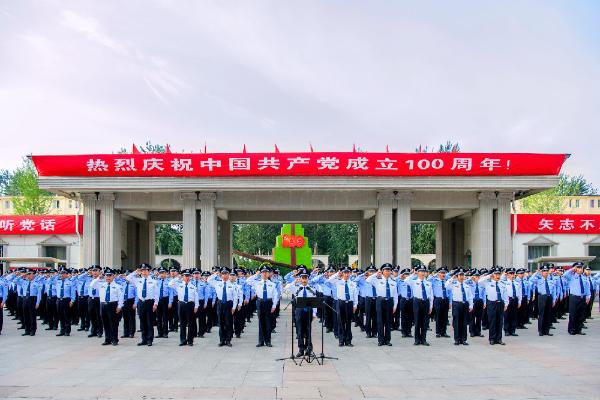 学校提前下发《“七·一”建党纪念日活动安排》,对收听收看庆祝大会、学习贯彻习近平总书记重要讲话精神进行部署安排。七一当天,警察大学校园内红旗招展、横幅高挂,“热烈庆祝中国共产党成立100周年!”“坚定不移听党话、矢志不渝跟党走”等标语随处可见,电子屏、校园网滚动展示电子海报、宣传口号、主题MV和学校举办的系列庆祝活动视频,处处洋溢着节日喜庆氛围。大会开始前,学校隆重举行升警旗、重温入警誓词仪式,表达了广大干部师生对伟大中国共产党的无限忠诚,对人民警察事业的无比热爱。