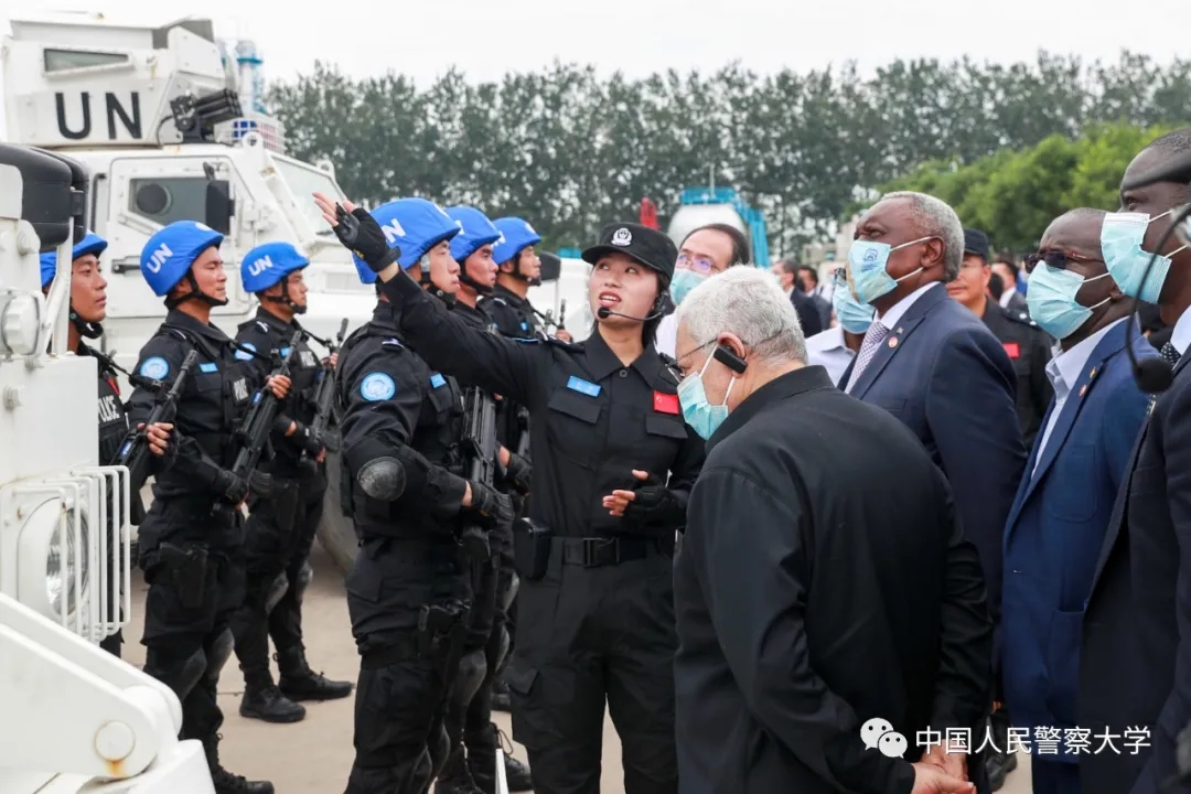 使节们观看了中国警察抗疫宣传片,参观了“大国承诺”“光辉历程”“维护和平”“共克时艰”“蓝盔精神”“最高荣誉”等为主题的中国维和成就展,实景体验了维和模拟营地。