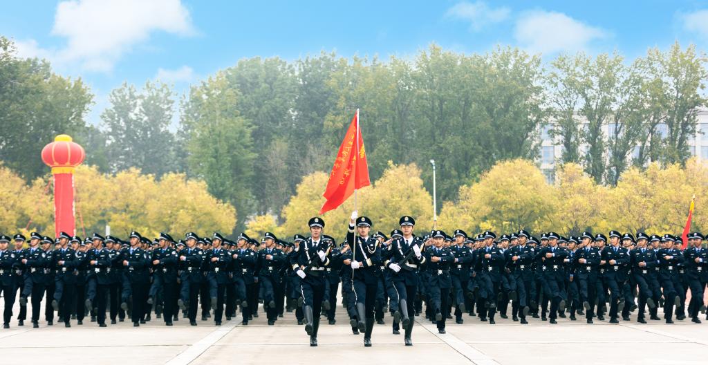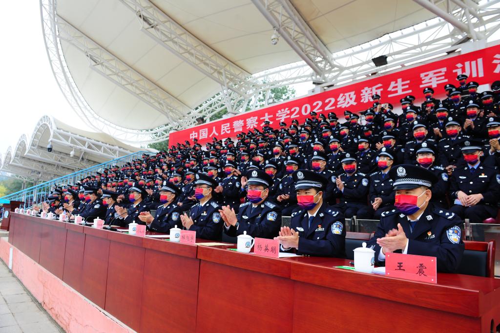 10月8日上午,警察大学2022级新生军训汇报演练暨开学典礼在标准训练场举行。2022级新生精神饱满、斗志昂扬,以铿锵的步伐、标准的动作、嘹亮的呼号汇报军训成果。学校党委书记牟玉昌发表讲话,校长马金旗检阅了全体新生,党委副书记房凌春主持汇报演练,副校长潘清义宣布获奖单位名单。新生代表韩秉纯、教师代表王福柱分别表态发言,学校领导、教职工及师生代表参加开学典礼,广州校区师生收看了网络直播。