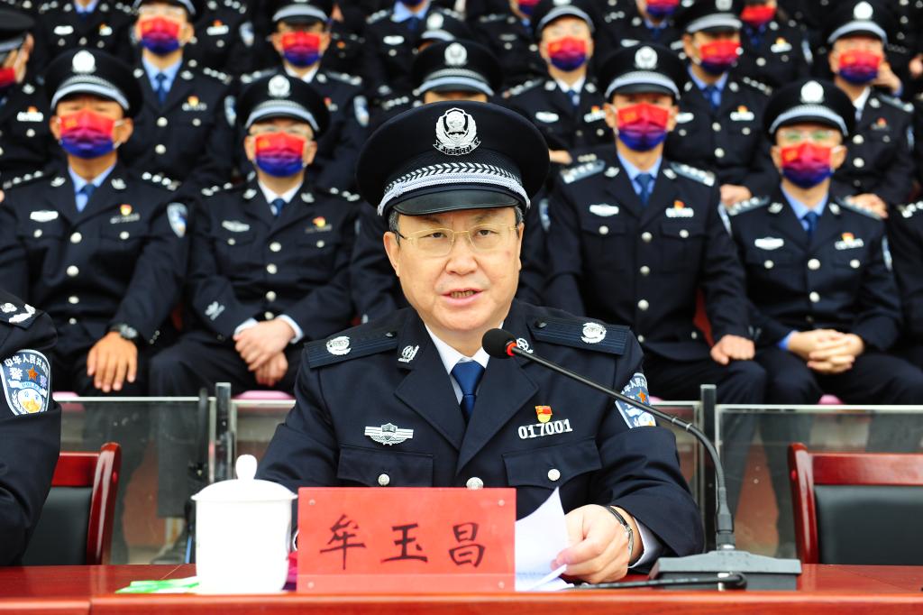 牟玉昌在讲话中,充分肯定了30多天来的训练成效,从学校建校初衷、职责任务、培养目标等方面入手,围绕“修德、勤学、明辨、笃实”,饱含深情对全体新生成长成才寄予了殷切期望。他强调:一要修德,就是要不断加强道德修养,注重道德实践。要明大德,厚植爱国情怀,坚持爱党、爱国、爱社会主义相统一。要守公德,强化法治意识,积极参加扶危济困、见义勇为、诚实守信等道德实践,展示新时代学子的使命担当。要严私德,强化集体观念,学会感恩、助人,懂得谦让、宽容,严格自省、自律,不断提高道德修养。二要勤学,就是要下苦功夫,求得真学问。要勤奋学习钻研,上好每一堂课,学好每一个知识点,丰富知识,升华思想。要理论联系实际,将理论与实践融会贯通,善于在独立思考中发现问题、解决问题,提高学习效果。要提升实战能力,强化警务技能,不断提升战术素养。三要明辨,就是要懂得是非、曲直、善恶、义利、得失,增强自信心。面对世界的纷繁复杂,面对各种思潮的相互激荡,面对学习生活等多重考验,必须是非明、方向清、路子正。要树立正确的世界观、人生观、价值观,认真学习贯彻习近平新时代中国特色社会主义思想,坚定政治立场,明确人生坐标,打牢忠诚底色。要善于明辨是非,理性思考、客观分析,特别是要乐观面对挫折,提高抗压能力,时刻保持乐观向上的人生态度。要善于科学抉择,在大是大非面前站稳立场,在利益诱惑面前洁身自好,在善恶美丑面前合理选择,始终保持正确的人生方向。四要笃实,就是要脚踏实地、扎扎实实做人做事。要诚实做人,做老实人、说老实话,襟怀坦荡、遵规守纪、服从管理,树立良好形象。要踏实做事,无论什么时候、对什么事情,都不懈怠、不敷衍,认真对待、全力做好;不管做大事还是小事,都不能急功近利,不要摆花架子,时时刻刻求真求实。要持之以恒,把困难挑战作为磨练自己的难得机遇,从点滴小事做起,一步一个脚印,滴水穿石、锲而不舍,坚韧不拔、久久为功。