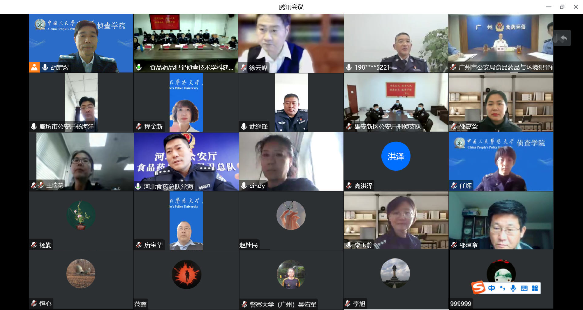 为进一步强化人才培养质量,提升学科专业建设水平,深化校局合作育人力度,11月26日,警察大学以线上线下结合方式召开了食品药品犯罪侦查技术学科建设研讨会。会议由警察大学侦查学院、警察大学食品药品犯罪侦查技术学科建设团队联合承办。来自公安部食品药品犯罪侦查局等单位的10位领导、专家,警察大学食品药品犯罪侦查技术学科建设团队教师、研究生参加了研讨会。警察大学副校长吴立志出席会议并致辞,会议由侦查学院院长徐永新主持。