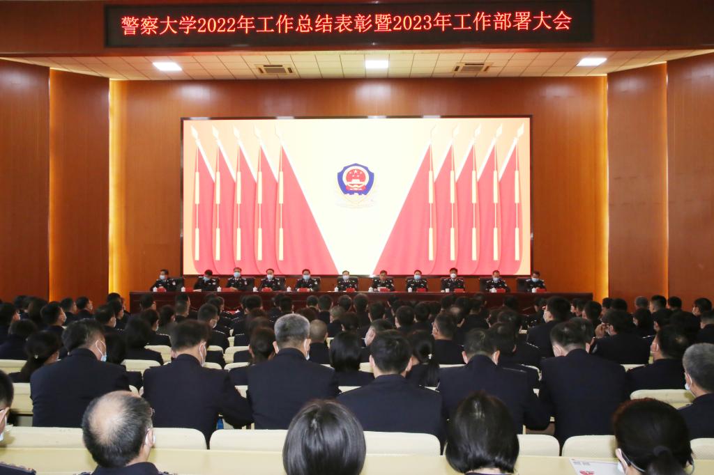 2月24日下午,警察大学召开2022年工作总结表彰暨2023年工作部署大会,牟玉昌书记讲话,马金旗校长对学校2022年全面工作进行总结,房凌春副校长宣读了《警察大学党委2023年工作要点》,张平副校长通报教学、学术科研奖励情况,张立勋副校长通报2022年度先进单位和个人表彰奖励情况、疫情防控成绩突出集体和个人表彰奖励情况,闫胜志副校长总结疫情防控专项工作。会议由房凌春副校长主持。
