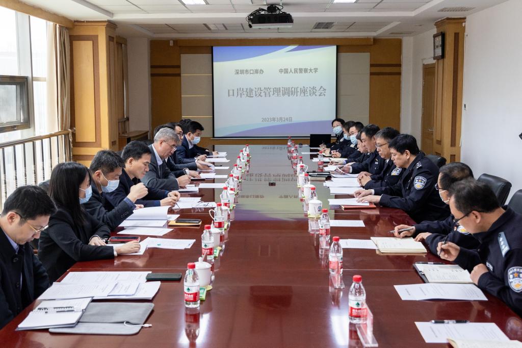3月24日下午,深圳市口岸办党组书记、主任王刚一行9人来校调研。牟玉昌书记会见王刚主任一行,刘义祥副校长、谢朝阳校长助理参加会谈并出席座谈会。