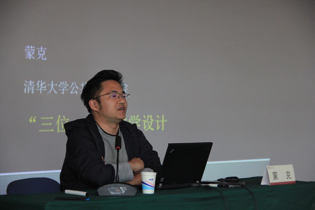 下午,清华大学公共管理学院蒙克副教授作《“三位一体”教学设计》专题讲座,以ChatGPT应用为引,阐述了应用先进教育技术的重要性,结合个人教学实践,讲授了“问题”“互动”“过程”三位一体课程设计原则的内涵,并基于第五届全国高校青年教师教学竞赛文科组一等奖的参赛经历,分享了青教赛的备赛经验。蒙克副教授授课形式生动,风趣幽默,赢得了参训教师的阵阵掌声。