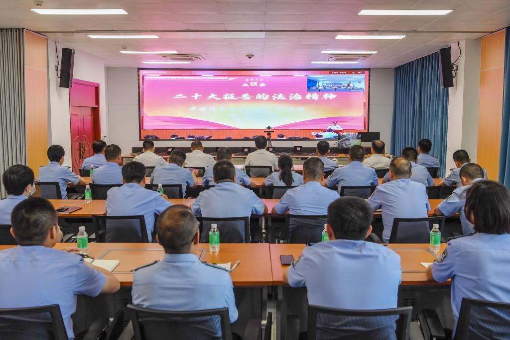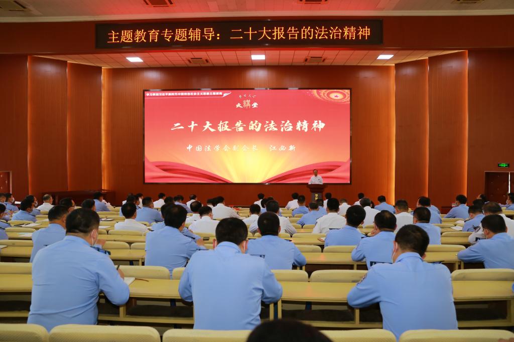 5月8日下午,警察大学学习贯彻习近平新时代中国特色社会主义思想主题教育读书班开展专题辅导,邀请著名法学家、中国法学会副会长江必新教授走进警察大学大讲堂,以“二十大报告的法治精神”为题作专题报告,马金旗校长主持会议,全校处级以上干部及师生代表在现场或通过视频直播聆听报告。
