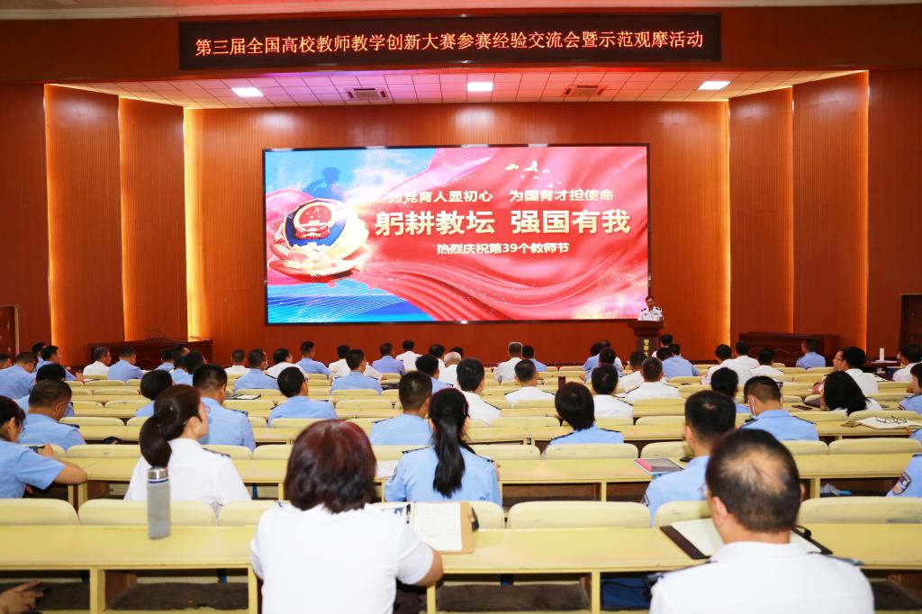 在我国第39个教师节即将来临之际,为树立典型、表彰先进、推广经验,9月6日,学校在报告厅举行了第三届全国高校教师教学创新大赛参赛经验交流暨示范观摩活动。校长马金旗,副校长张立勋、刘义祥、吴立志、杜旭宇出席本次活动,相关职能处室负责人、各学院(中心)院长(主任)、副院长(副主任)及全体无课教师现场参加了活动,广州校区领导、干部和教师通过网络直播方式线上观摩。本次活动由副校长刘义祥主持。
