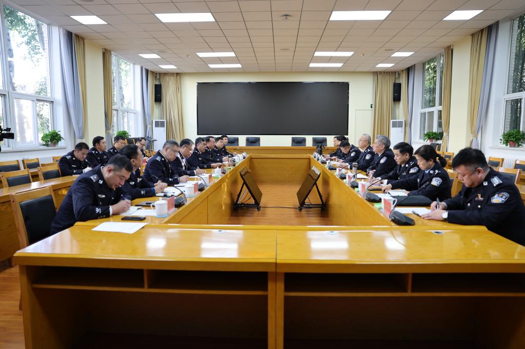 11月8日,山东警察学院党委副书记、院长毕可志,副院长贺曙敏一行来校调研,双方围绕教育数字化、警务化管理、素质强警等方面,开展座谈交流。