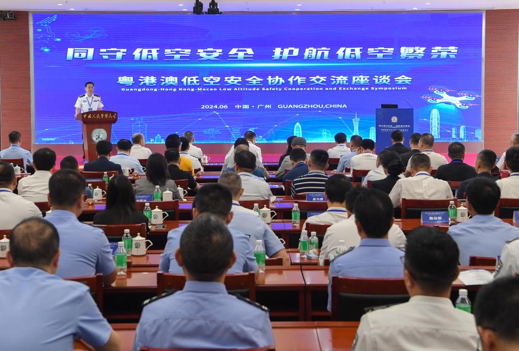 6月4日上午,粤港澳低空安全协作交流座谈会在警察大学广州校区召开,来自大湾区政府部门、香港入境事务处、高等院校、科研机构、高新企业及山东警察学院、长沙北斗产业安全技术研究院、中交遥感载荷科技(江苏)有限公司、成都安则科技有限公司、北京历正科技有限公司等48个单位108位领导和专家齐聚警察大学广州校区,围绕贯彻落实总体国家安全观,汇聚智慧和力量,守护低空安全,赋能粤港澳低空经济高质量发展进行了座谈交流。警察大学党委委员、广州校区党委书记潘慈平主持会议并代表警察大学发出倡议,警察大学广州校区刘金广主任致辞。