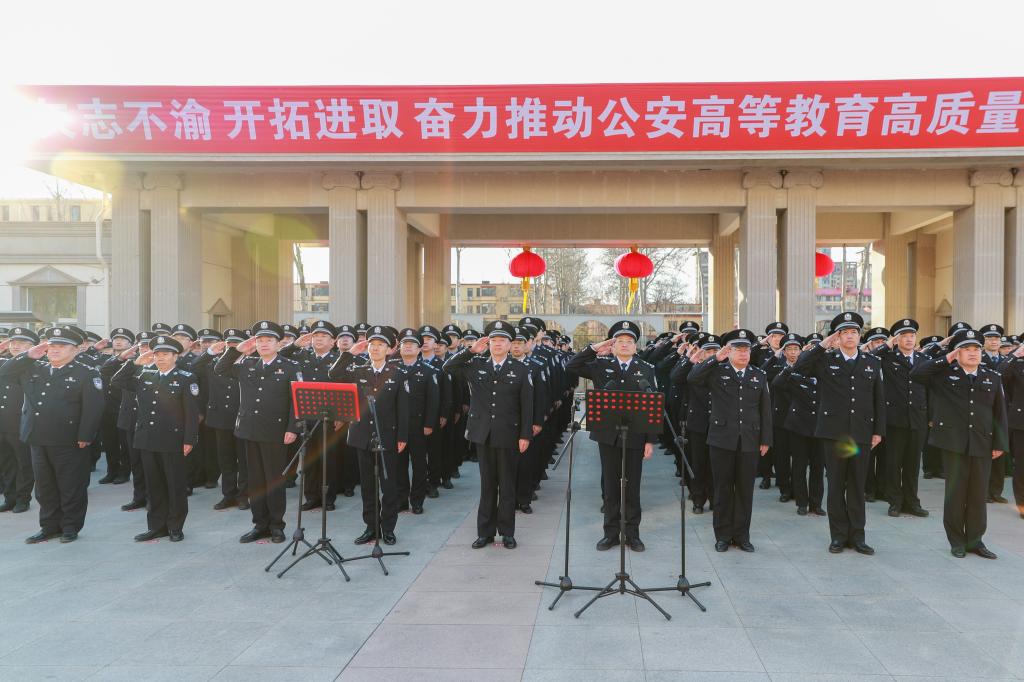 为进一步激励广大师生坚守从警初心、永葆忠诚本色,集中展现学校教职工良好的精神风貌,警察大学举行升警旗、重温公安机关人民警察誓词仪式,校领导、全校干部教师参加活动。党委书记张立勋在仪式上发表讲话,校长吴立志领誓公安机关人民警察誓词。活动由副校长潘清义主持。