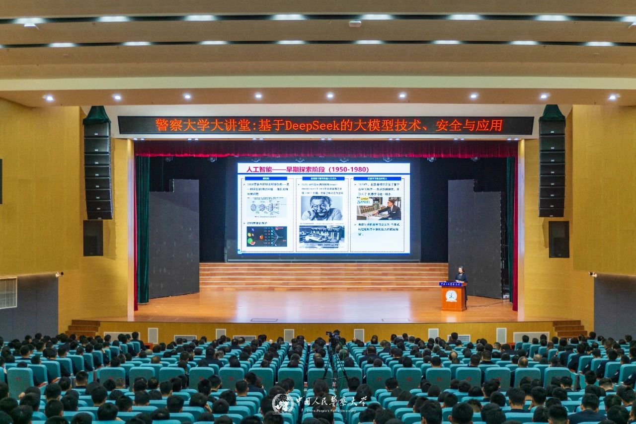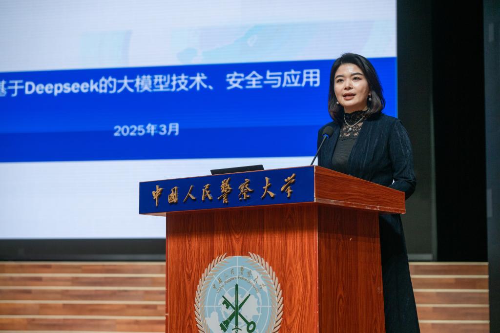 2025年3月21日下午,为进一步提升广大师生对人工智能前沿技术的认知水平,拓宽学术视野,激发科研创新活力,推动人工智能技术在公安及教育领域的应用研究,根据警察大学大讲堂活动安排,学校邀请中国科学院信息工程研究所研究员、博士生导师张潇丹来校以《基于DeepSeek的大模型技术、安全与应用》为题授课。学校领导和师生代表聆听讲座,广州校区以视频连线形式参加活动。
