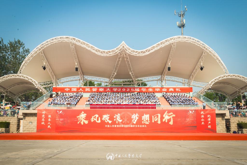 6月24日,警察大学举行2025届学生毕业典礼。全体校领导和2025届毕业生,教职工代表,以及2000余名学生家长欢聚一堂,共同见证2200余名学生圆满完成学业,怀揣梦想启航新征程。警察大学党委书记张立勋讲话,校长吴立志主持典礼,副校长潘清义宣读了《关于表彰2025届优秀毕业生的通报》,副校长杜旭宇宣读了《关于准予2025届袁天博等2280名学生毕业的决定》。校领导为毕业生代表和优秀毕业生代表颁发了学历证书和优秀毕业生荣誉证书。特勤学院一队蔡永烨代表全体毕业生发言,广东省中山市公安局警官邱文卿代表毕业生家长发言,侦查学院物证鉴定中心副教授李阳代表教师发言。广州校区通过现场直播全程观看。