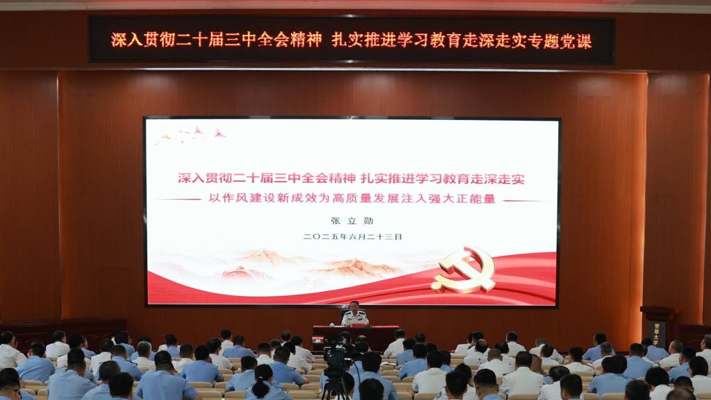 近日,根据公安部党委关于深入贯彻中央八项规定精神学习教育有关部署,警察大学党委书记张立勋紧密结合学校实际和个人学习思考,以“深入贯彻二十届三中全会精神,扎实推进深入贯彻中央八项规定精神学习教育走深走实,以作风建设新成效为高质量发展注入强大正能量”为题,为全校党员领导干部、校属各级党组织成员和部分教职工、学生党员代表讲授专题党课,广州校区线上同步听课。