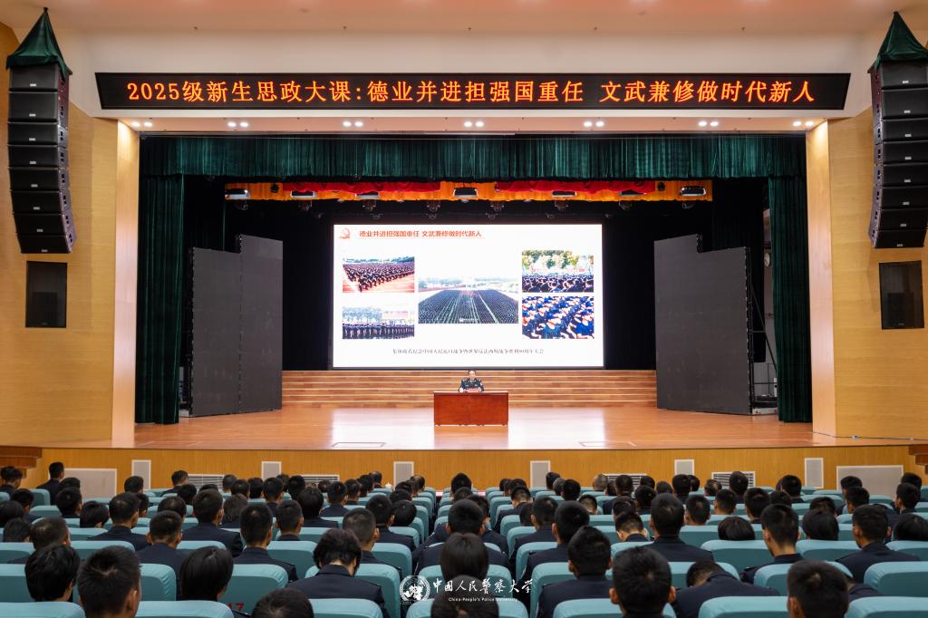 10月10日,警察大学党委书记张立勋以《德业并进担强国重任 文武兼修做时代新人》为题,为2025级全体新生讲授了一堂兼具思想深度、视野广度和青春温度的思政大课。2600余名新生聆听授课。副校长潘清义、杜旭宇,校属有关单位负责人、各学院主要负责同志、学生大队长参加授课活动。