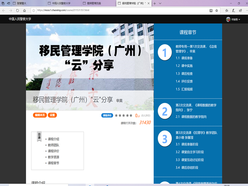 近日,移民管理学院(广州)依托“学在警大”平台创新开通“移民管理学院(广州)云分享”学习空间,全院教师在“云”上开展“未晓”读书会、教学经验交流和教学科研培训等活动,打造在线互促共学平台。