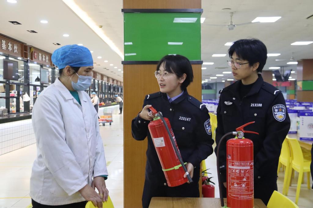 11月9日,防火工程学院消防宣传周活动正式启动。学院宣讲人员首先来到警察大学第三学生食堂,为工作人员和部分学生代表围绕灭火器的使用、厨房中的安全隐患和预防,以及人员密性场所安全疏散基本原则等几个方面进行了认真讲解,指导食堂工作人员实际操作了灭火器的正确使用方法,并开展了实地消防安全疏散演练。活动期间,学院宣讲人员扎实的专业知识与细致讲解赢得了食堂全体工作人员的阵阵好评,现场气氛热烈,互动频繁。在积极开展实地宣讲的同时,学院还注重拓展消防安全宣教范围、深化消防安全科普常识,专门联合河北省火灾科学与消防安全科普基地,邀请了来自消防安全领域内的多名专家学者开展了线上讲座活动,讲座范围覆盖学校全体师生。
