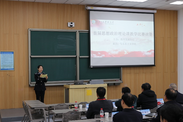 为全面学习贯彻习近平新时代中国特色社会主义思想和党的二十大精神,提升思政课育人水平,展现思政课教学质量,形成办好、讲好、学好思政课的良好氛围,2023年12月1日,警察大学成功举办首届思想政治理论课教学比赛决赛,本次比赛由学校教师发展中心主办,马克思主义学院承办。副校长刘义祥、杜旭宇出席比赛现场,来自公安院校和地方高校马克思主义学院的7位专家担任评委,马克思主义学院领导和全体思政课教师观摩比赛。