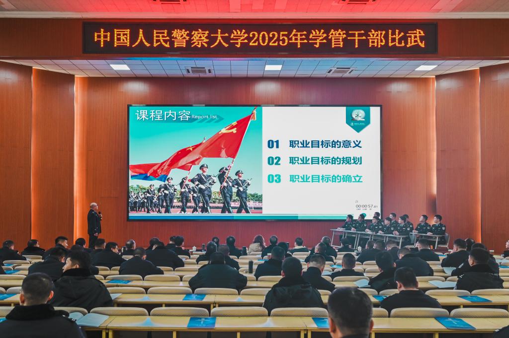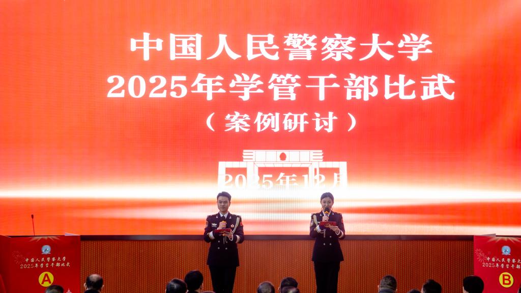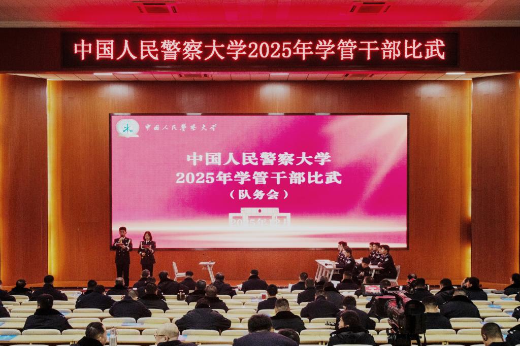 为着力打造政治过硬、业务精湛、作风优良的复合型学管队伍,锤炼“四个知道、一个跟上”优良作风,警察大学于12月16日至19日举办2025年学管干部比武。本次比武秉持 “以赛促学、以赛促练、以赛促改”理念,通过模拟授课、案例研讨、谈心谈话、队务会四个模块,全方位检验学管干部综合素养,推动学校学生管理工作向精细化、精准化、科学化纵深迈进。比武特邀请河北省辅导员大赛省赛评委组成评审团,为赛事专业性、公平性保驾护航。来自14个学院的44名学管干部同台竞技,充分展现了新时代警大学管队伍的过硬本领与育人情怀。学校党委书记张立勋现场观摩指导。