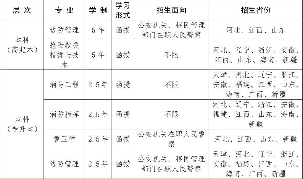 1.警察大学成人高等教育招生工作实行“阳光工程”,全程由学校纪检监察部门、省级成人高校招生办公室监督。学校不委托任何中介组织、机构或个人代理招生,招生咨询人员的建议意见仅供参考,学校不做任何有关录取的承诺。