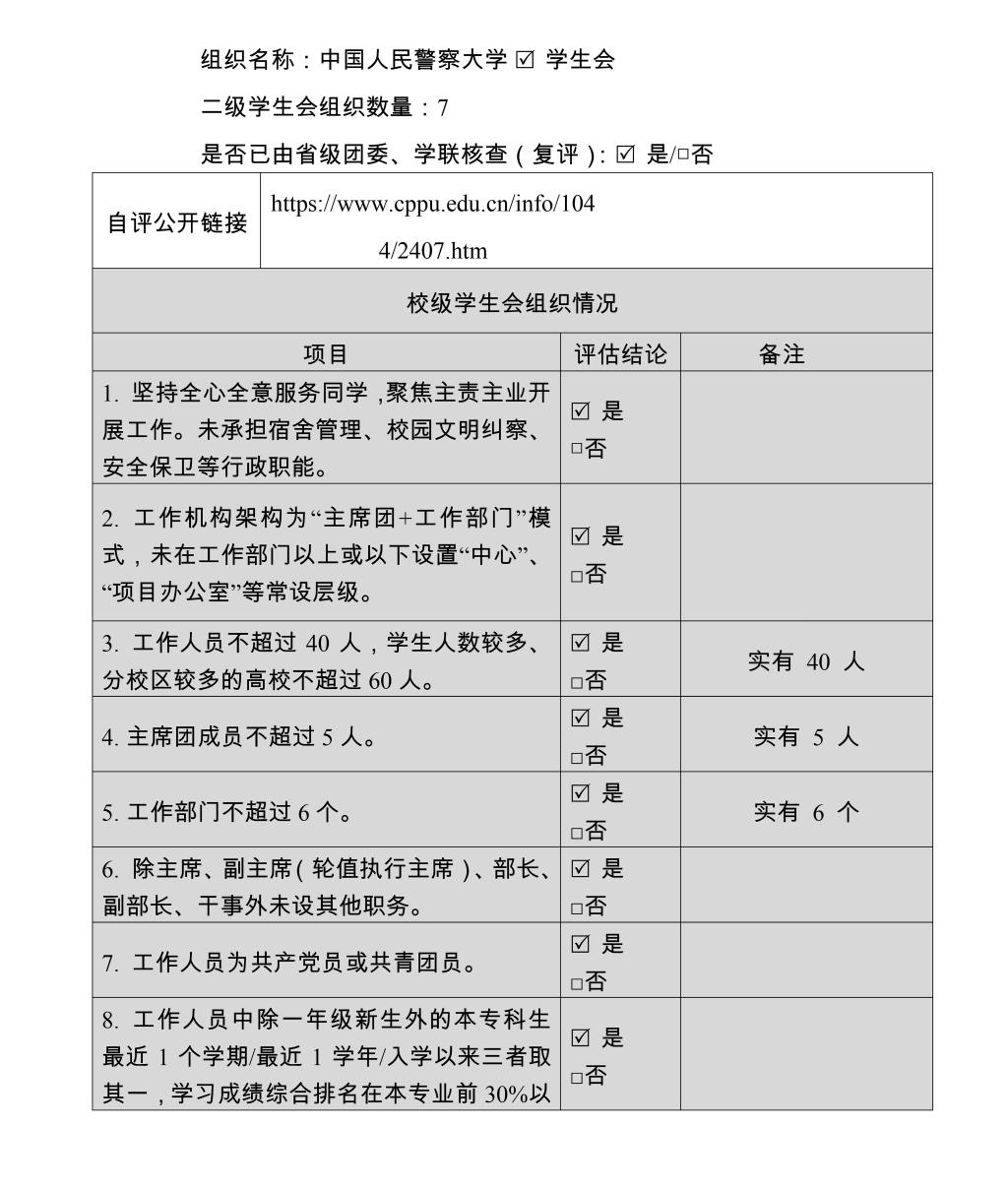 (一)校学生会、二级学生会组织改革自评表