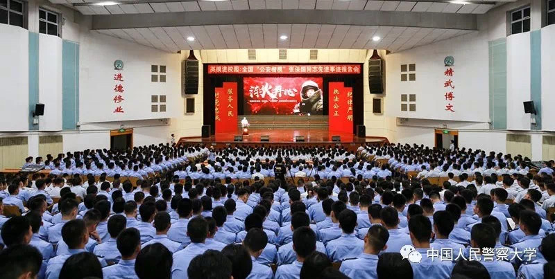 (左图)2019年6月13日下午,全国“公安楷模”、山东省济南市公安局特警支队作训处排爆中队负责人张保国同志先进事迹报告团走进警察大学,为全校教职员工作了一场感人至深、催人奋进的精彩报告。学校师生代表1500余人现场聆听了报告。