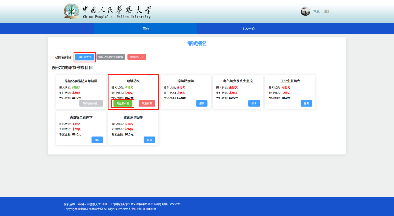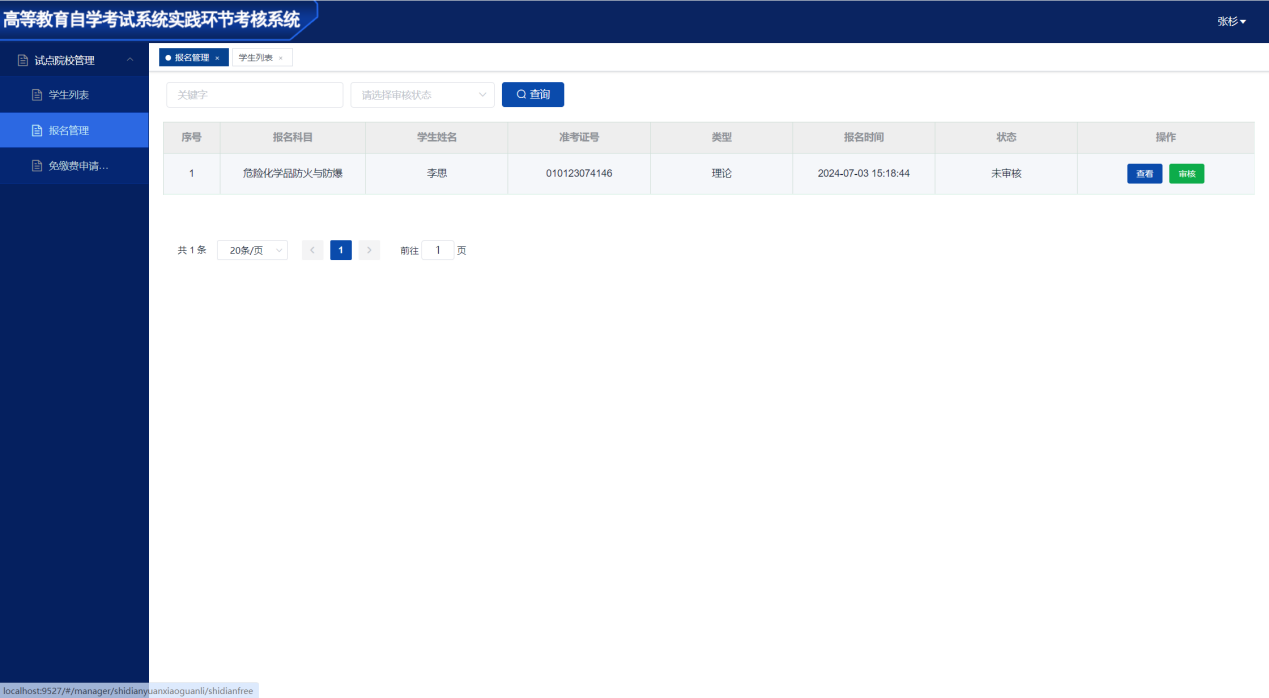 免缴费报名管理功能:审核本校考生考试报名的免缴费申请。