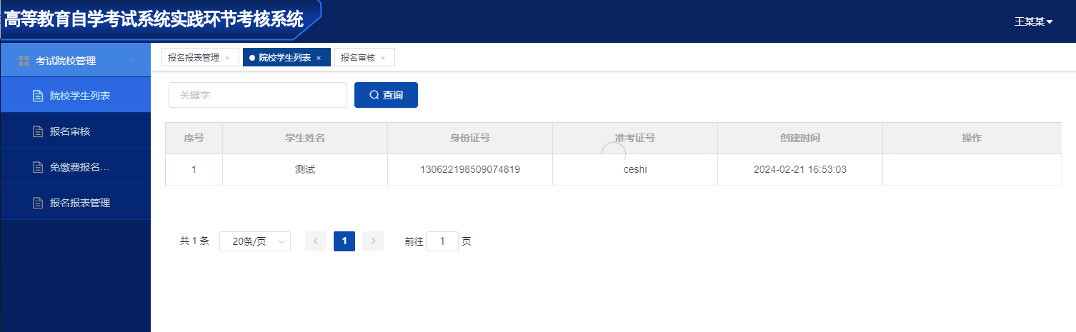 点击”审核“按钮,审核考生的考试报名申请(审核通过考生方可缴费)。
