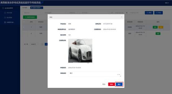审核通过,点击“通过”按钮,通过初审。初审通过后,流程自动提交终审请求到考试平台。