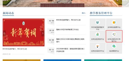 2、点击教学教务管理平台”栏目中的“自考过程性评价考核平台”进入如下页面。