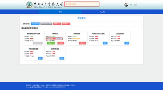 第一步、考生通过考生端(https://zkxnfzksd.cppu.edu.cn)报名考试科目。考生登录ballBET贝博BB艾弗森继续教育官网(/jxjy/);点击右侧“教学教务管理平台”栏目中的“自考报名缴费平台”后点击“2025年上半年山东省自考消防工程专业强化实践能力培养(过程性评价)考核报名缴费端口”进入高等教育自学考试实践性环节虚拟仿真考核系统页面,通过此端口报名考试科目,具体说明请看“考生操作流程“。