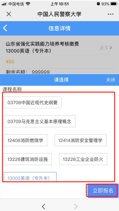2.进入缴费系统后需点击左下角的“注册”(使用手机号注册),注册完成后登入系统(注册时用的手机号+密码登入),点击【山东省强化实践能力培养考核报名缴费】,选择自己所要报名的科目,每个科目单独支付缴费,在支付时如实填写“必填信息”,点击提交支付即可。