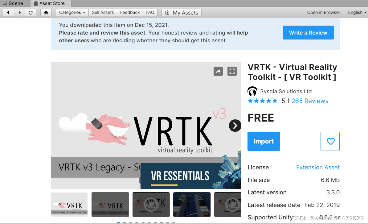 在资源商店导入  VRTK 3.3