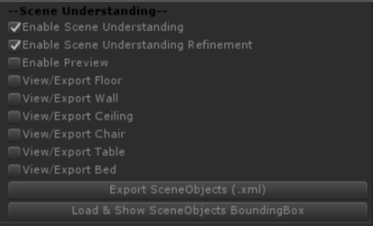 此模块允许您获取真实世界的 3D 语义场景信息。要启用场景理解,请点击“开始重建”,然后切换“启用场景理解”。