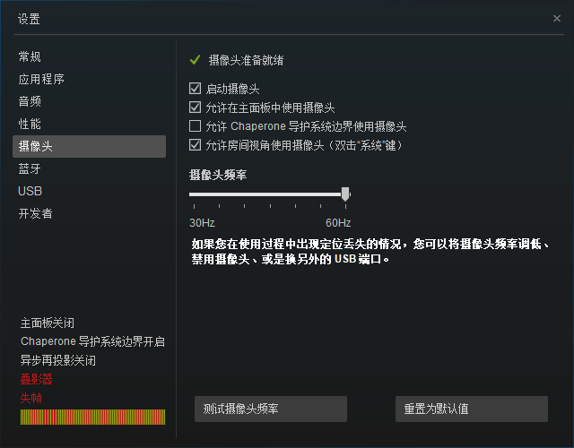 打开SteamVR,在设置中开启摄像头