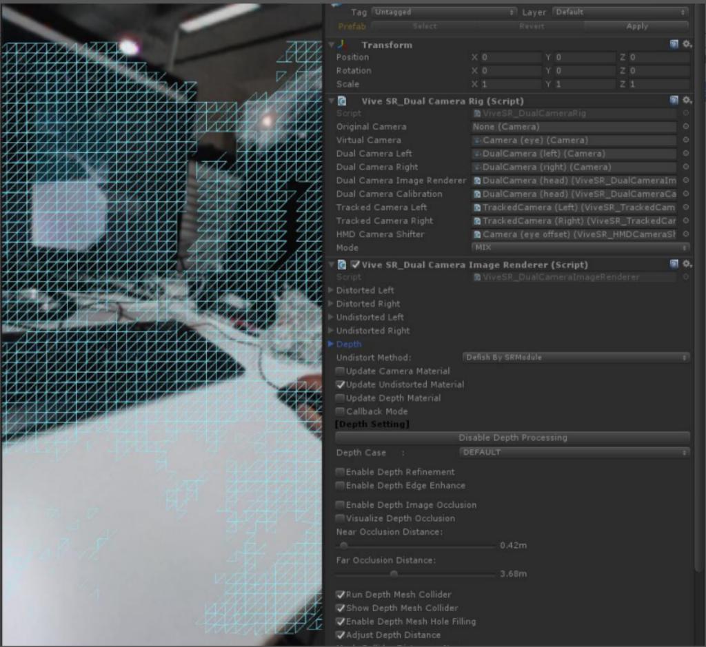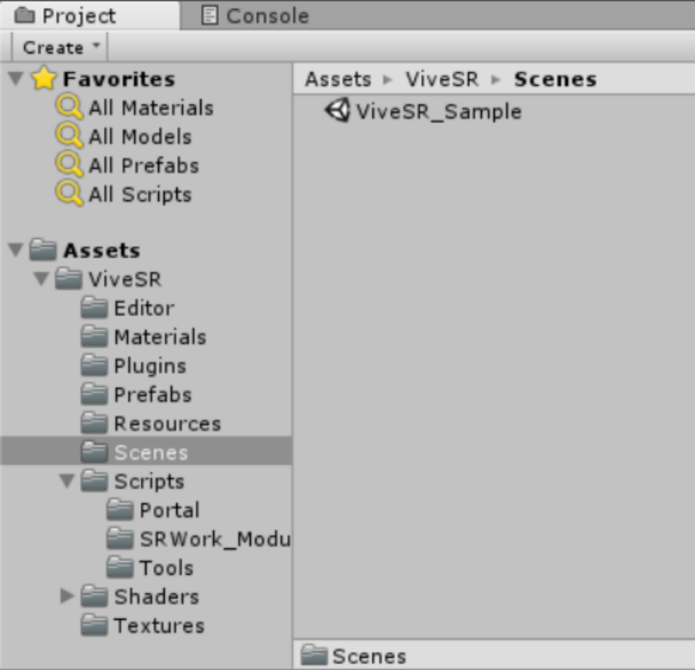 4. 打开 ViveSR\Scenes\Sample 中的示例场景