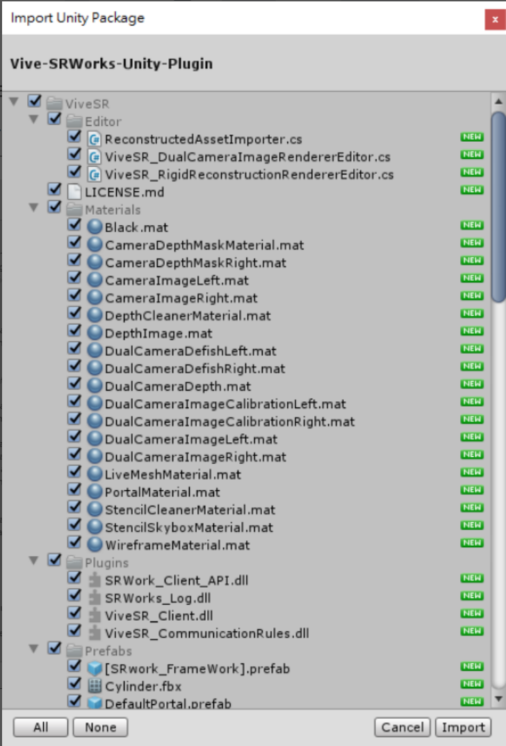 2. 导入“Vive-SRWorks-Unity-Plugin.unitypackage”