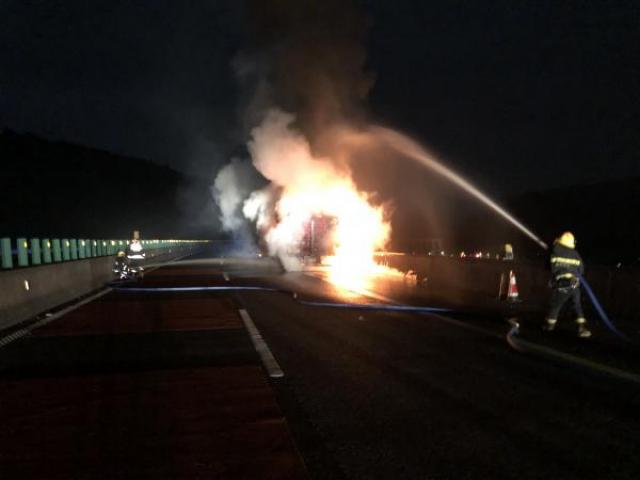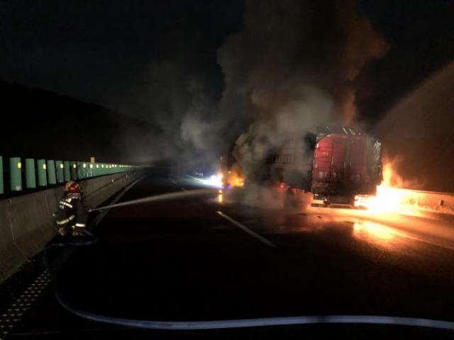 12月20日凌晨1时12分,赣州市夏蓉高速崇义段汝城往崇义县方向有一辆挂车着火,崇义县消防救援大队接警后调派一辆抢险救援车、一辆水罐车及14名消防指战员赶赴现场。