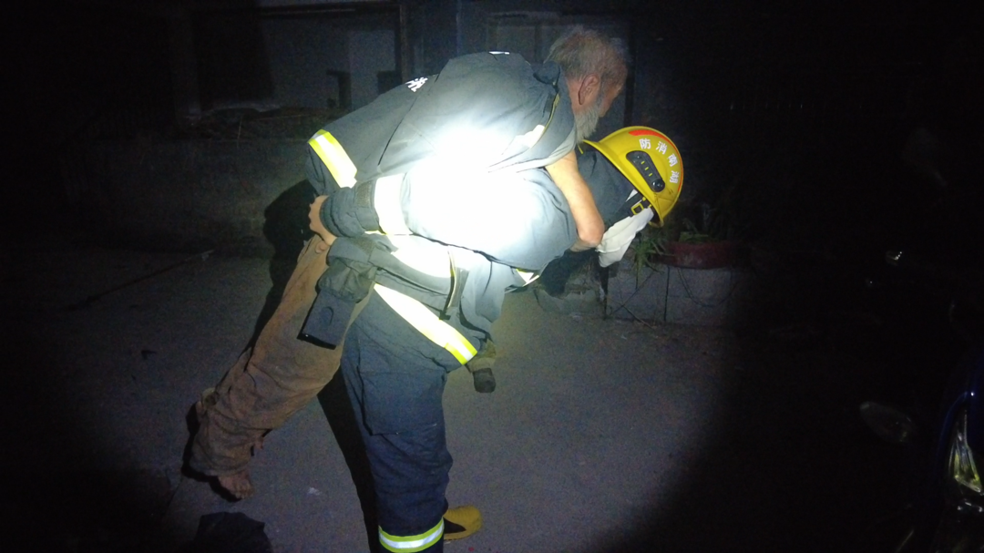 还是在龙山县,12月10日4时25分,民安街道老城社区某民房发生火灾,一位孤寡老人被困火场,情况十分紧急。4时35分,消防救援人员到达现场,经侦查发现起火物为木头,起火点为该户客厅,一名腿脚不便的老人被困客厅。搜救组两名消防员佩戴空气呼吸器进入火场,立即将其带离火场,当时老人生命体征良好,背部有烧伤,由于没有穿上衣,消防员赶紧为他披上战斗服。经过10分钟的处置,大火被成功扑灭。