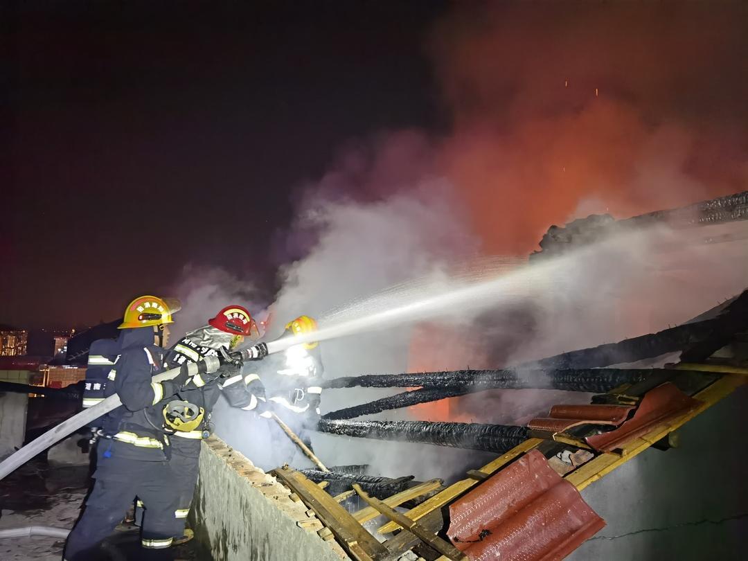 救援力量到达现场后发现,起火房屋为一独栋三层小楼,起火部位为房顶,已经过火大半房顶,正通过楼梯口和窗户向三楼蔓延。
