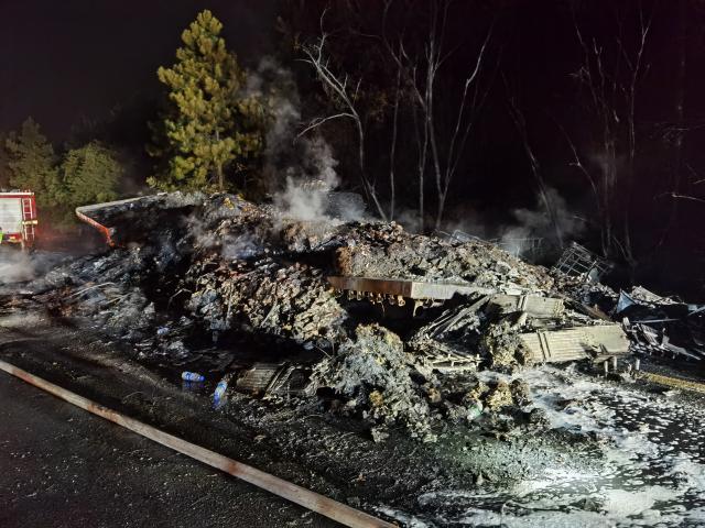 消防救援人员从驾驶员处了解到,发生自燃的重型半挂牵引车装载的货物以着火车辆主要装载大量红酒、空桶、白色塑料颗粒、棉花、墙板、光伏配件、波纹管、电池水冷组件等货物。如果不及时将火扑灭,后果将不堪设想。