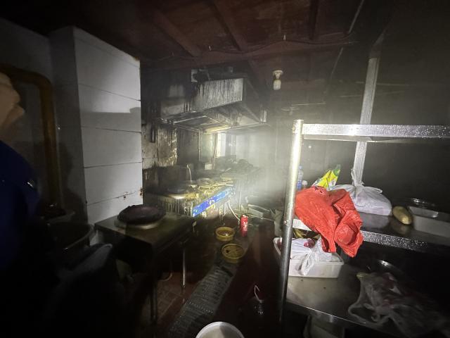 据了解,发生火灾时正值营业高峰期,后厨在用油锅炒料过程中,油温过高,突然起火,引燃周边的纸皮、天花板等,随后,蔓延至油烟机外面的管道。工作人员第一时间用灭火器进行扑救,但由于火势蔓延较快无法控制,随即拨打119电话报警。