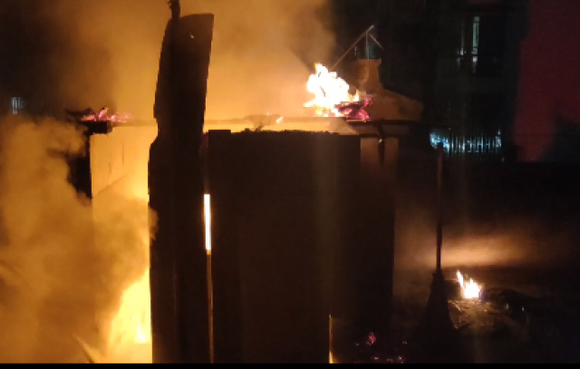 消防救援人员赶到后发现,起火点是一住户家自建的熏肉棚,现场火势熊熊,浓烟滚滚,如若不能及时扑灭,火势将很快蔓延至周围邻舍。见此情形,救援人员立即疏散围观群众,并清理周边易燃物,随后使用灭火器和水对其进行处置。经过十多分钟的扑救,火势被成功控制。