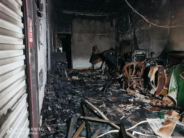 消防救援人员到达火灾现场后,发现起火建筑为一栋4层楼房,一楼为店铺,二楼以上为住宅,着火点位于一楼的一家照相馆,现场火势较大,卷帘门上锁无法打开。通过卷帘门缝隙可看到店铺内的火光,滚滚浓烟不断从缝隙中涌出,楼上住户已从疏散通道逃出,现场无人员被困。