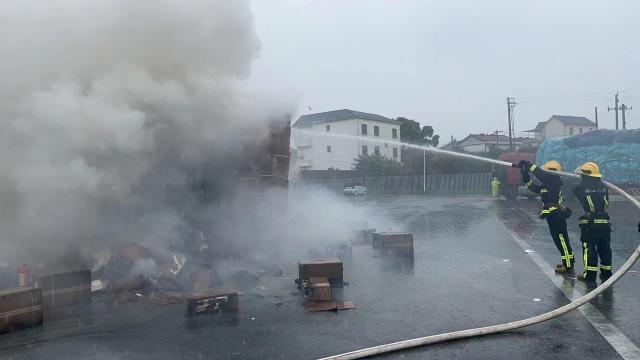 消防救援人员到达现场后,发现一辆满载装修材料的半挂车停在路边,车辆尾部正在燃烧。消防救援人员立即铺设水枪进行扑灭,并配合司机将篷布拆除,火势很快得到控制。随后,利用挖掘机将起火点货物一点点拆卸下来,防止下方货物存在阴燃现象。经过一个小时的处置,火被彻底扑灭。